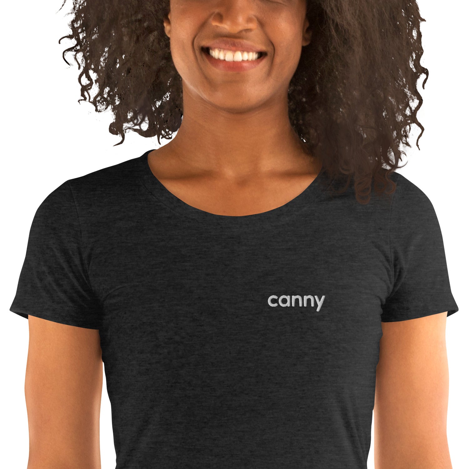 A super-soft, form-fitting, breathable t-shirt with a slightly lower neckline than a classic t-shirt. Canny wordmark embroidery.